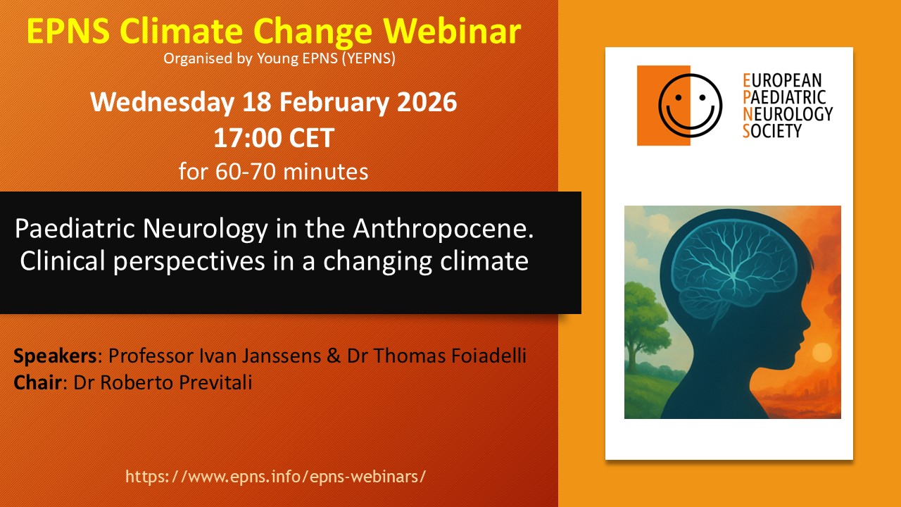 Description: We are currently living in an era dominated by human-driven climatic and environmental footprint. Of the nine planetary boundaries that define the ecological threshold for Earth’s stability, seven have already been crossed. Among these, climate change acceleration has become a crucial, severe and highly worrying problem of our times. Not only is climate change negatively affecting our planet’s ecology, but it also poses a direct and indirect threat to human health, causing increase in disease incidence, morbidity and mortality, and worsening health outcomes. Children, and especially children with neurological or neurodevelopmental disorders, are uniquely vulnerable in this sense. The EPNS is committed to address awareness and knowledge within pediatric neurologists about climate change and its impact on our profession.